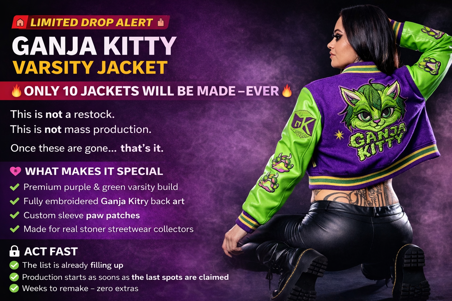 GANJA KITTY CROPPED TEE